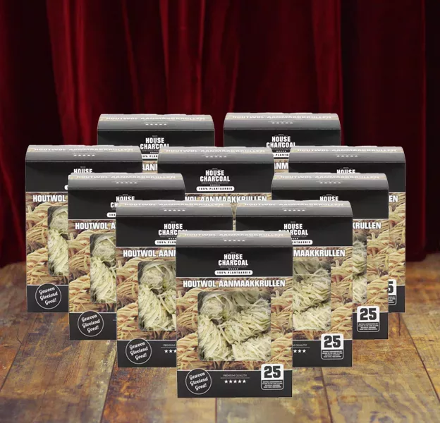 House of Charcoal – 10 doosjes Houtwol Aanmaakkrullen FSC®