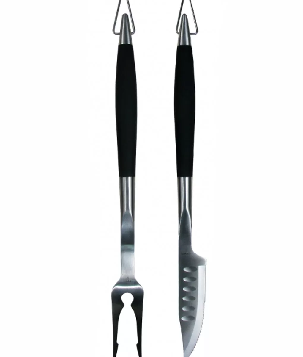 Het Mes en de Vork zijn gemaakt uit één stuk roestvrijstaal en hebben een hittebestendig handvat.