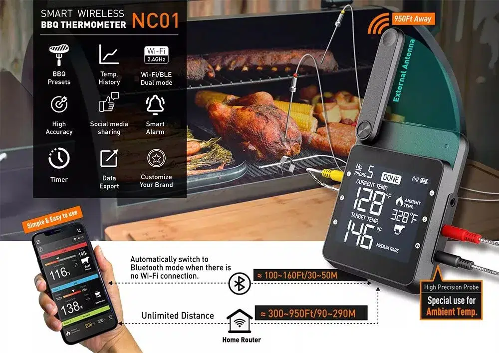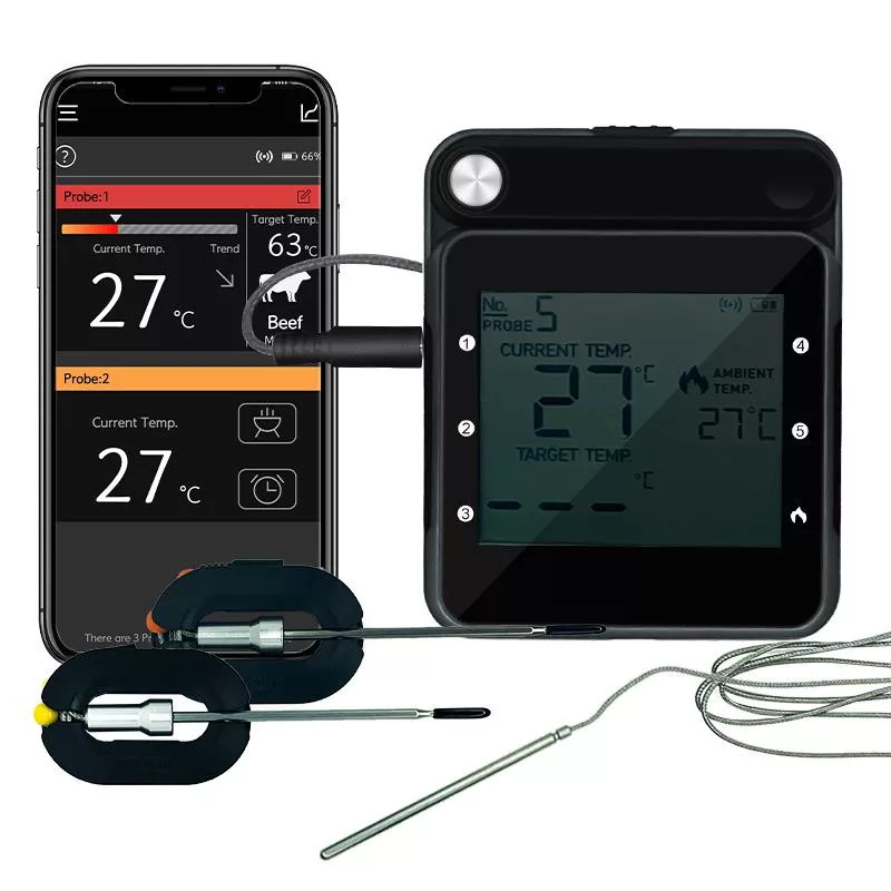 - Smart wireless BBQ thermometer display