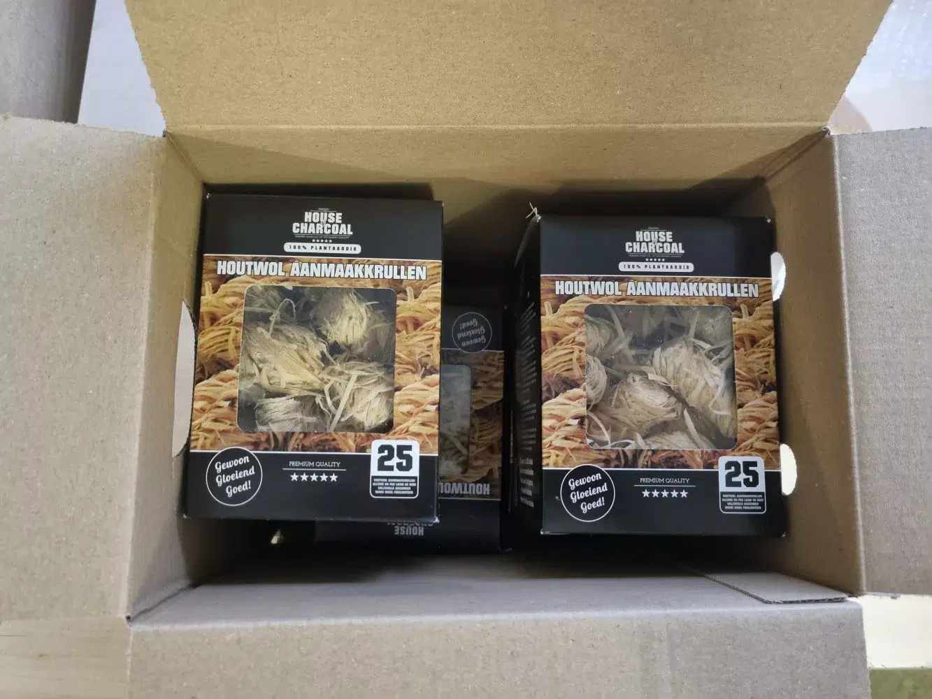 In de verpakking zit 4 doosjes of te wel 100 stuks aanmaak houtkrullen.