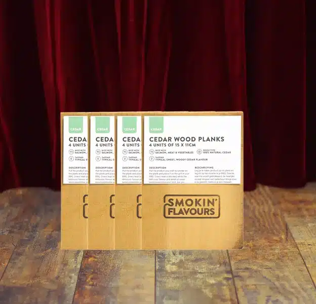 Van bomen uit Canadese bossen worden deze 100% natuurlijke cederhouten planken gemaakt. Cederhout heb je overal, maar uit Noord Amerika en Canada komt absoluut de beste kwaliteit met de typische zoete, houtige ceder geur. Leg je te roken product op de plank en leg dit op het rooster in je BBQ. Directe warmte wordt geblokkeerd, de heerlijke smaak en geur van cederhout dringt door in je gerecht. Gebruik je een metalen BBQ? Week dan het plankje minimaal 30 minuten vooraf in water. Bij een keramische BBQ hoeft dit niet. De best practice is absoluut een zalmmoot en het roken van vis, maar denk ook eens een mooi stuk vlees of het roken van groenten!